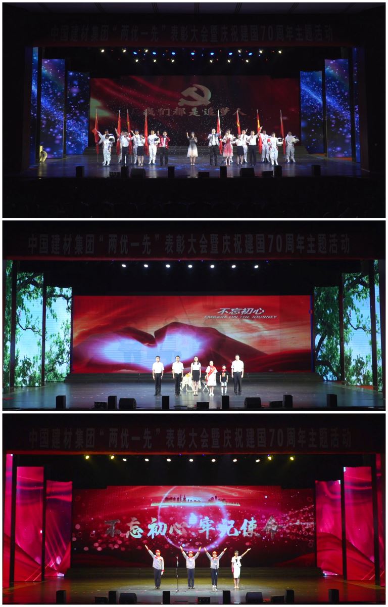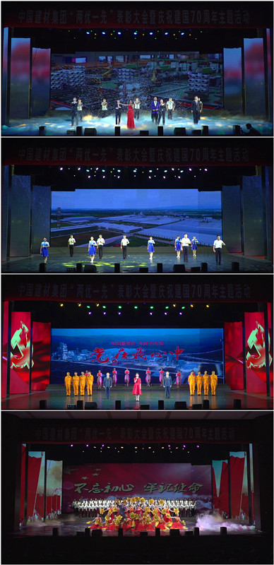 在慶祝中華人民共和國成立70周年主題活動上,來自集團11家成員企業(yè)的干部員工分為傳承、責任、奉獻、奮斗四個篇章,以演說、合唱、舞蹈、快板、情景劇、舞臺劇等多種形式,或激情澎湃、或感人至深、或娓娓道來,呈現(xiàn)了一場振奮人心、鼓舞士氣的精神盛宴,一次次贏得現(xiàn)場雷鳴般的掌聲。北新建材的《初心向黨耀北新 砥礪奮進譜新篇》、凱盛科技的《偉大跨越中的凱盛之路》,回顧了中國建材人不忘初心、砥礪前行,大力發(fā)展新型建材和玻璃工業(yè)的光輝歷程;中聯(lián)水泥的《最美的藍天 最美的你》、天山水泥的《敢問誰人無芳華 我自不悔駐村行》、南方水泥的《夢想啟航南方》,講述了中國建材人積極貫徹落實黨中央決策部署,勇做美麗中國的推動者、脫貧攻堅的踐行者和供給側(cè)結(jié)構(gòu)性改革的引領者的動人故事;中國建材總院的《我們都是追夢人》、地勘江蘇總隊的《誓言無聲》、北新集團的《我的房屋夢》,詮釋了中國建材人堅守奉獻、實干擔當?shù)膱远ㄐ拍詈蜔o悔追求;中國巨石的《逐夢奮進再出發(fā)》、泰山玻纖的《泰山玻纖 玻纖泰山》、中材國際南京的《黨在我心中——與祖國同行 與時代共進》、凱盛科技的《不忘初心》展現(xiàn)了中國建材人不忘初心、牢記使命、永遠奮斗的最美姿態(tài)?;顒釉谌珗鳊R聲高唱《歌唱祖國》的歌聲中圓滿落幕。