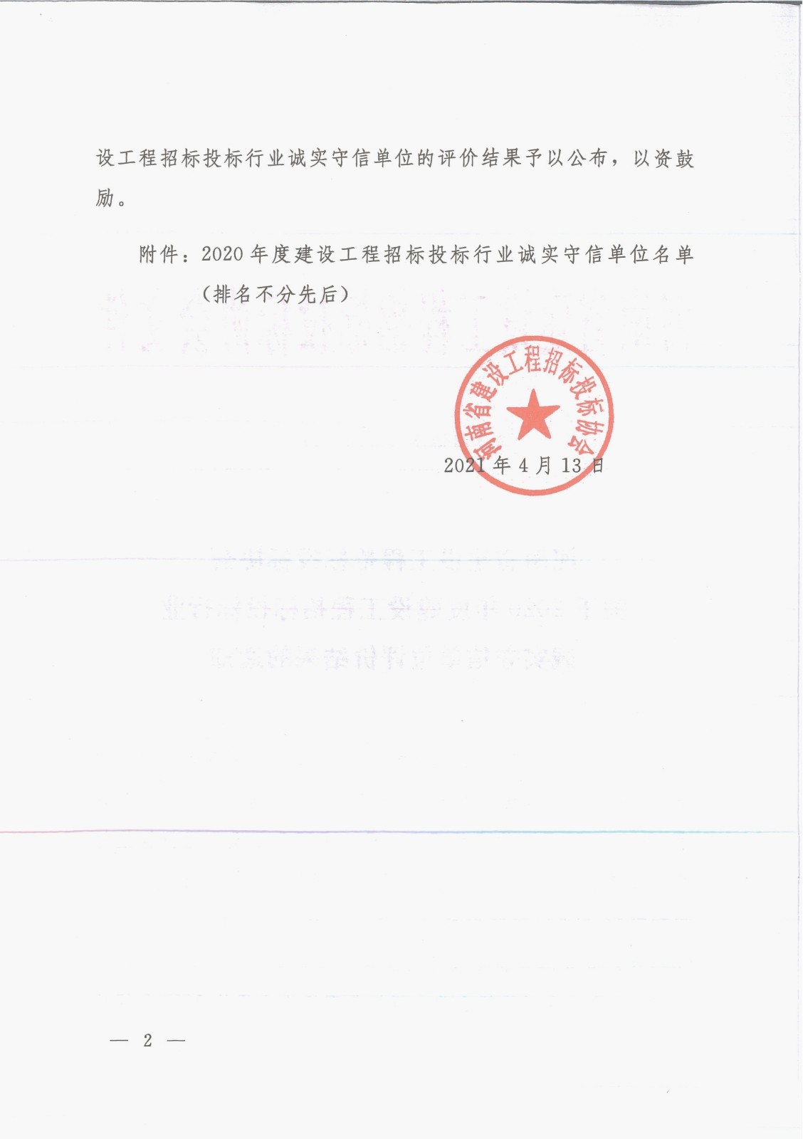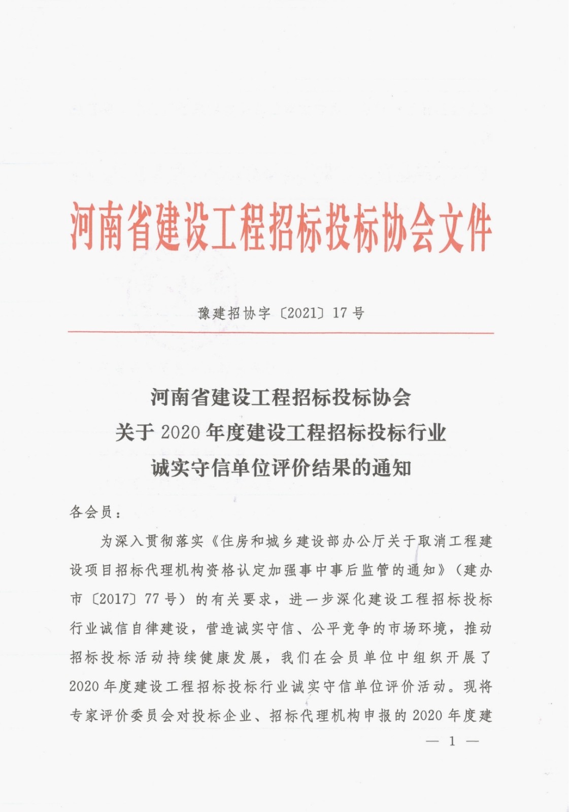 喜報(bào)|河南鴻宸榮獲“2020年度河南省建設(shè)工程招標(biāo)投標(biāo)行業(yè)誠(chéng)實(shí)守信單位”稱號(hào)