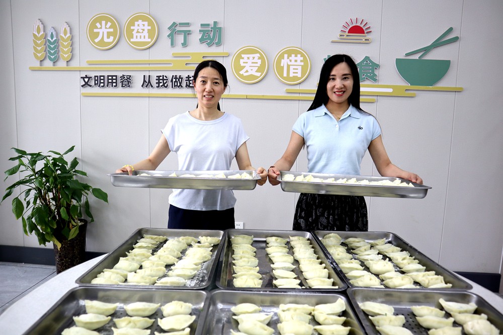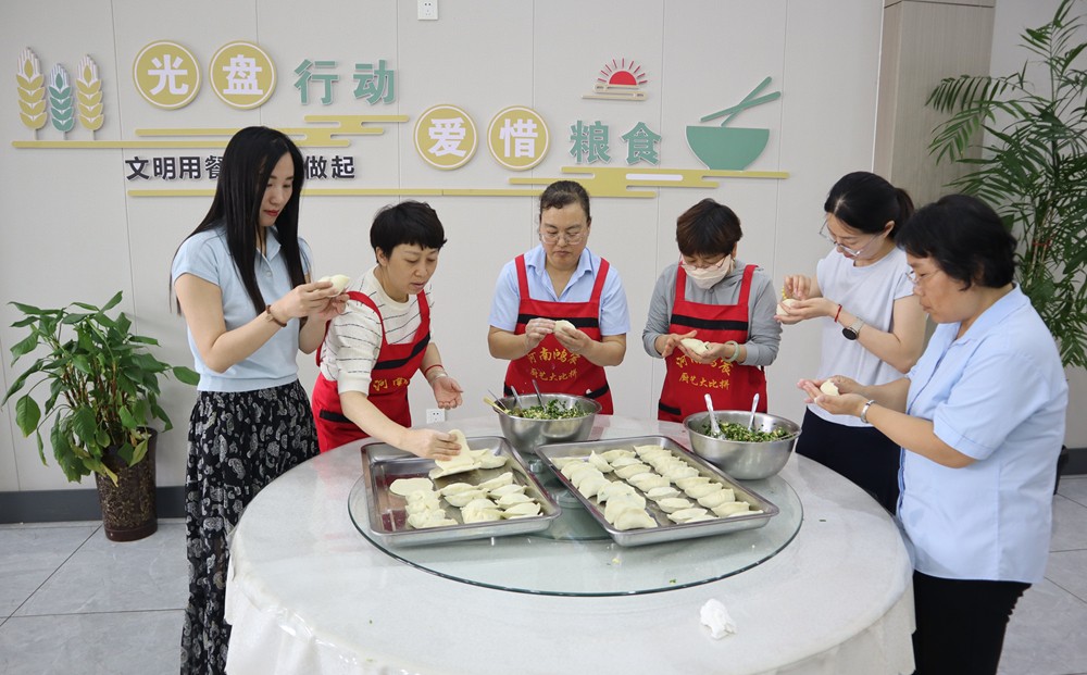 在活動現(xiàn)場,員工們熱情高漲,分工明確、各司其職。食堂大師傅將鮮嫩的韭菜、金黃的雞蛋、噴香的粉條和過油的豆腐塊等食材巧妙搭配,調(diào)制出香氣四溢的餡料;搟皮的員工手法嫻熟,一個個圓潤均勻的面皮在手中快速成型;負責(zé)包菜角的員工則靈活地將餡料填入面皮,捏出精致的花邊。大家圍坐在一起,一邊包菜角,一邊分享工作和生活感悟,現(xiàn)場歡聲笑語不斷,配合默契,一派其樂融融的溫馨景象。