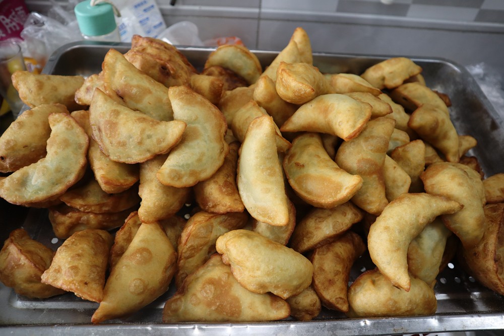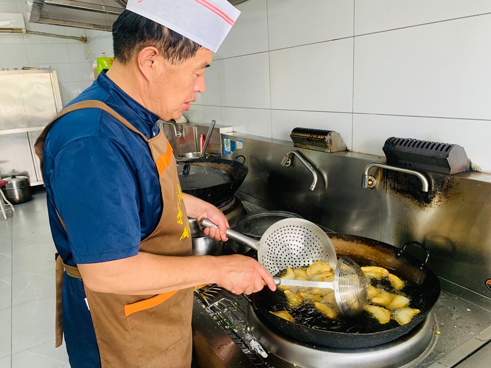 經(jīng)過一個多小時的忙碌,300余個金燦燦、香噴噴的菜角新鮮出爐??粗约旱膭趧映晒?,員工們臉上洋溢著滿滿的成就感與幸福感。